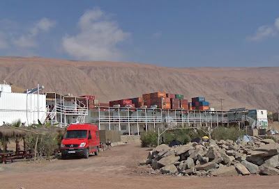 Grandpa and Grandma stayed in a paragliding hotel at the foot of a giant sand dune in Iquique Chile. The hotel was built out of surplus shipping containers. Before shipping containers (in the 1950s) stuff was loaded, tied down, untied and unloaded from the ship one piece at a time.